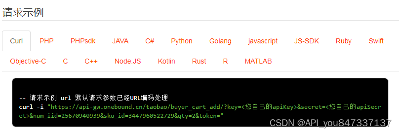 请注意,使用淘宝/天猫的API接口通常需要你有一个淘宝开放平台的开发者账号,并创建一个应用以获取相应的API权限和密钥。此外,你还需要确保你的应用遵循平台的使用条款和政策,不得滥用API接口或侵犯用户的隐私和权益。