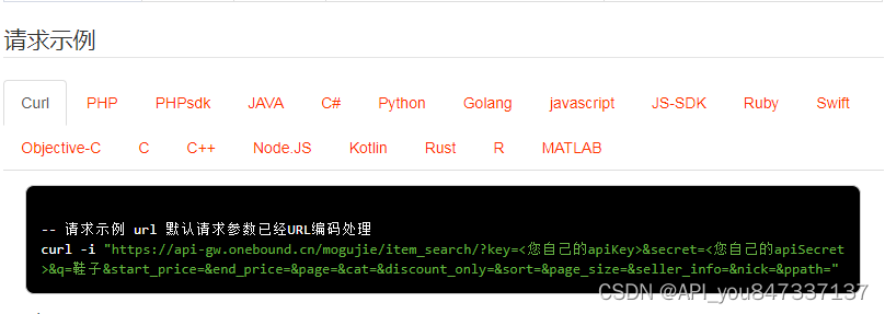 | api_name | String | 是 | API接口名称(包括在请求地址中)[item_search,item_get,item_search_shop等] |