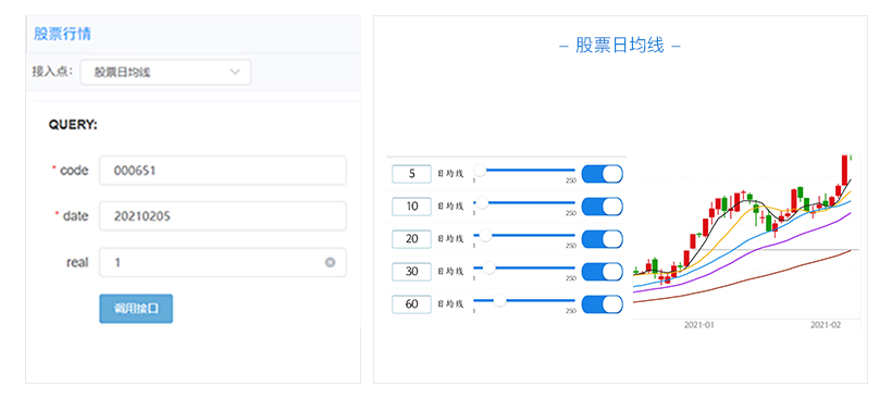 功能:查询股票日均线数据,最多返回3个月数据。
