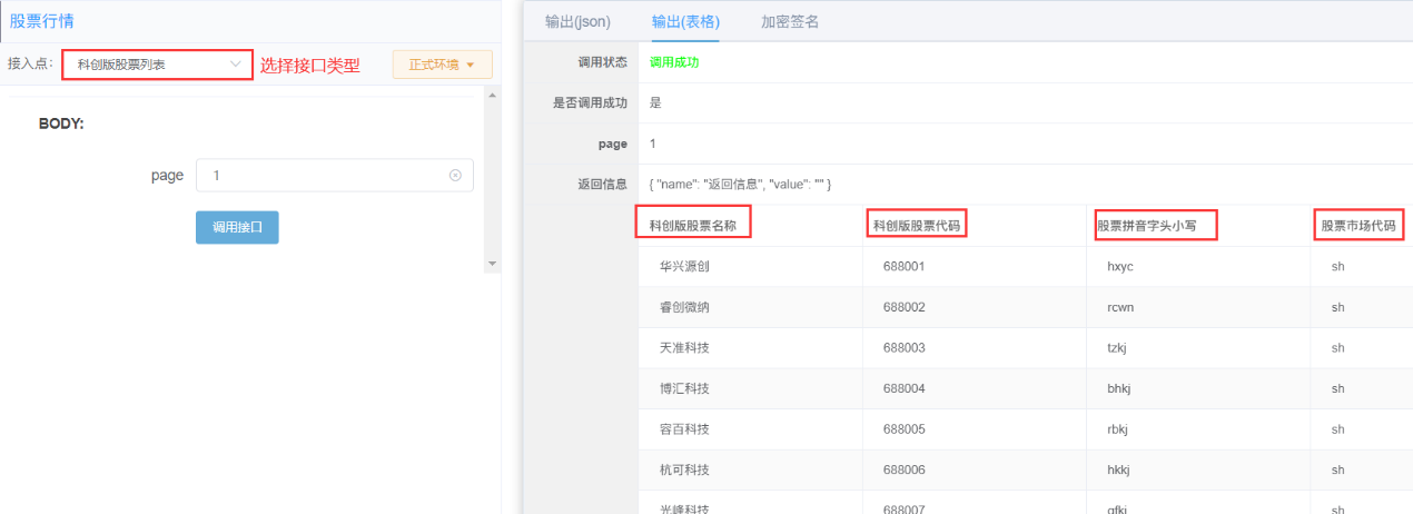 功能:此接入点可以返回科创版股票信息,包括股票名称、股票代码等,每页固定返回40条数据,每日更新数据。