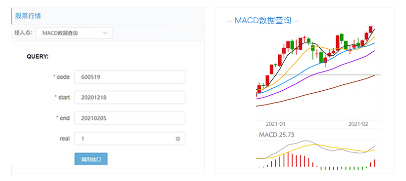 功能:可以按天查询沪深股票的MACD数据,查询时间最大跨度为一个月。
