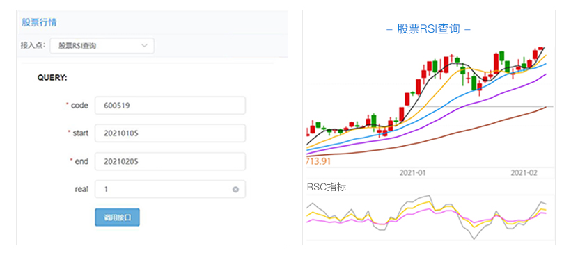 功能:可以查询沪深股票的RSI(相对强弱指数),查询时间区间最大跨度为一个月。