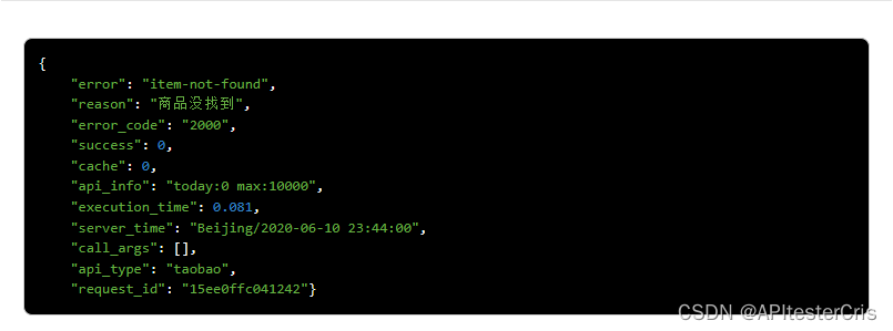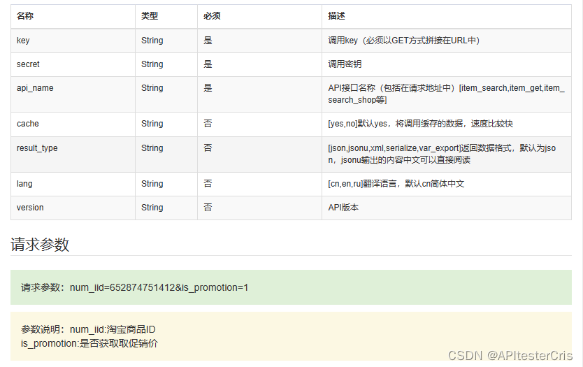 再既定的业务下,接口请求类型、响应机制等确定后,再以电商数据平台商品详情接口为例,了解下接口的其他组成内容。