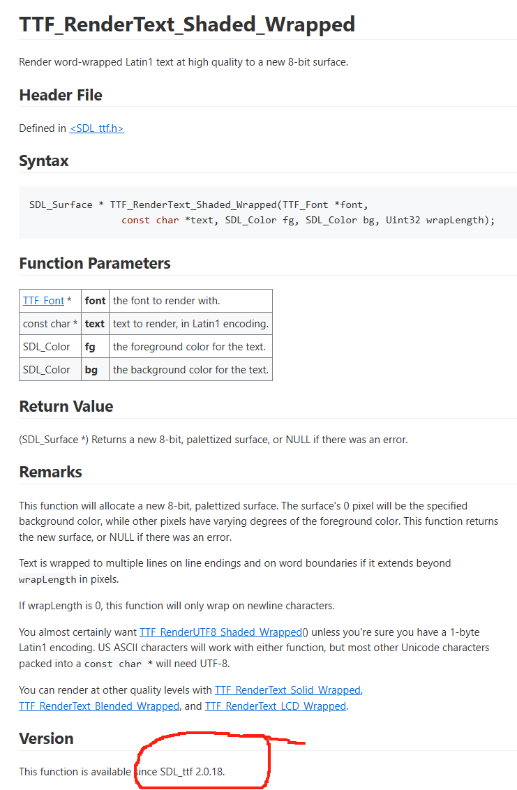 问题描述:TTF_RenderText_Shaded_Wrapped这个函数没法找到(还有一个函数也没有,但是我忘记截图了,可以在评论区打一下是什么函数)