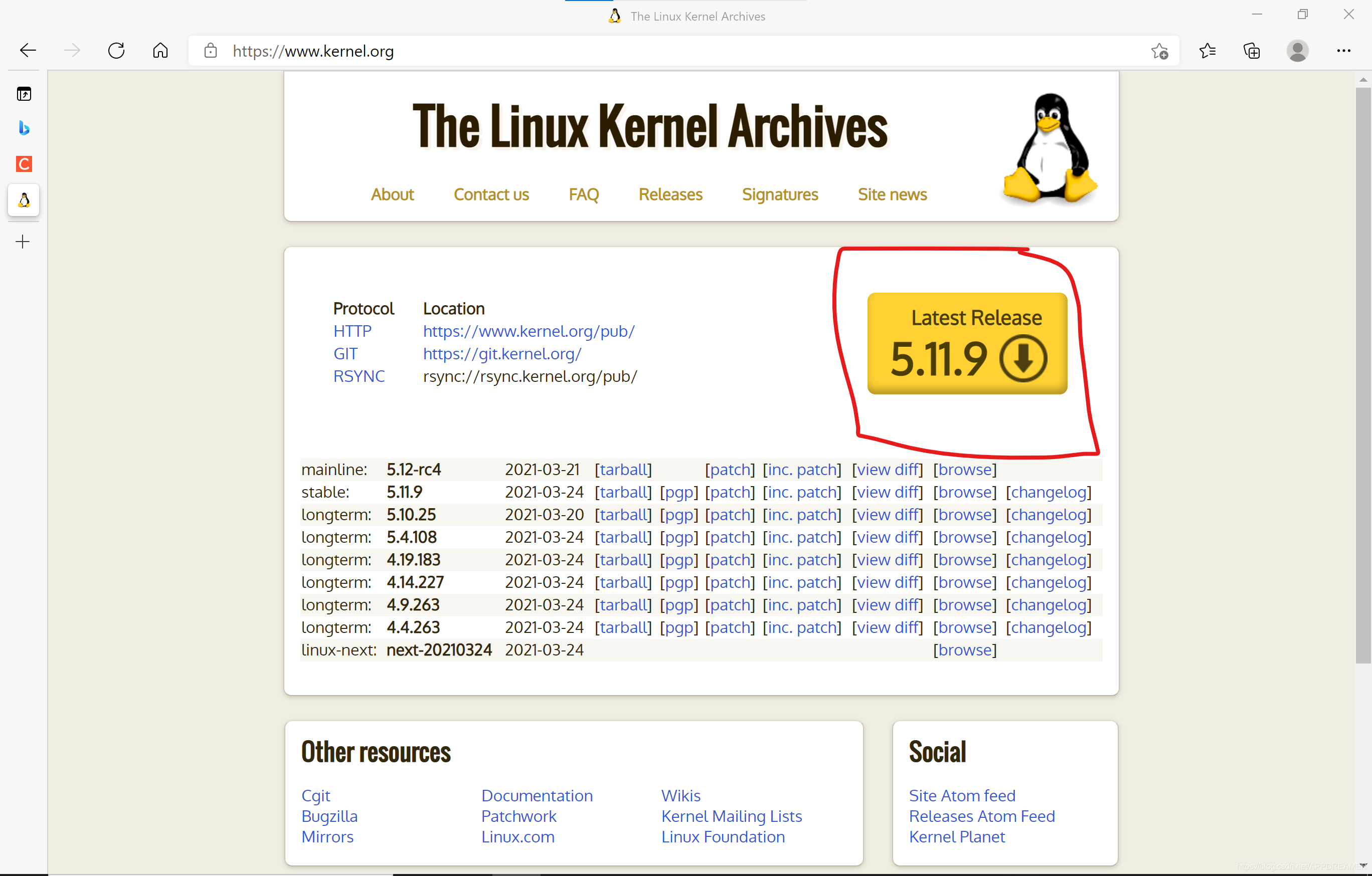 (1)在Ubuntu中前往网址(https://www.kernel.org/)