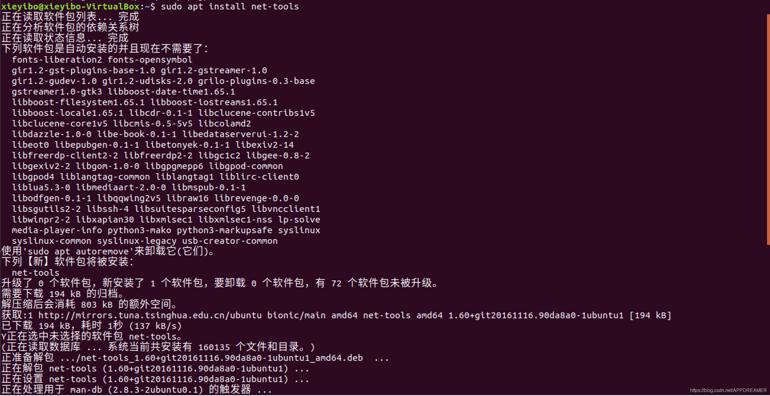 解决办法:使用指令sudo apt install net-tools安装net-tools软件。