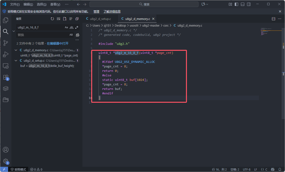 用到的u8g2_Setup_ssd1306_i2c_128x64_noname_f函数中,只调用了u8g2_m_16_8_f这个函数,所以留下这个函数。