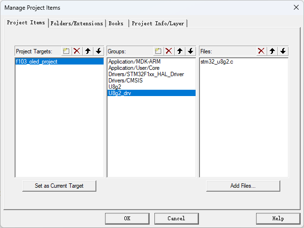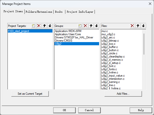 U8g2支持多种显示驱动的屏幕,因为源码中也包含了各个驱动对应的文件,为了减小整个工程的代码体积,在移植U8g2时,可以删除一些无用的文件。