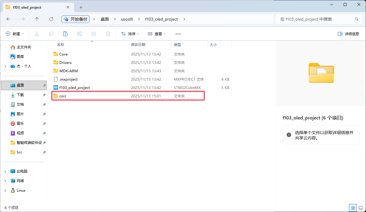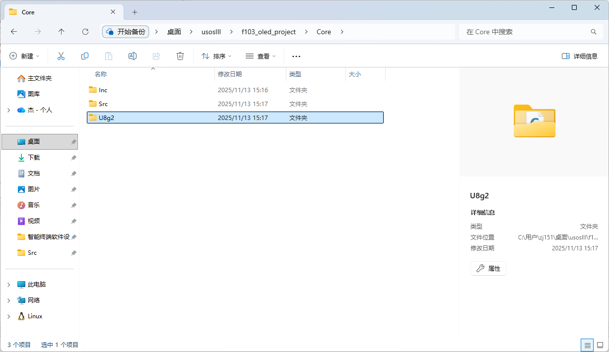 在Core中新建文件夹U8g2用于存放我们自己编写的代码