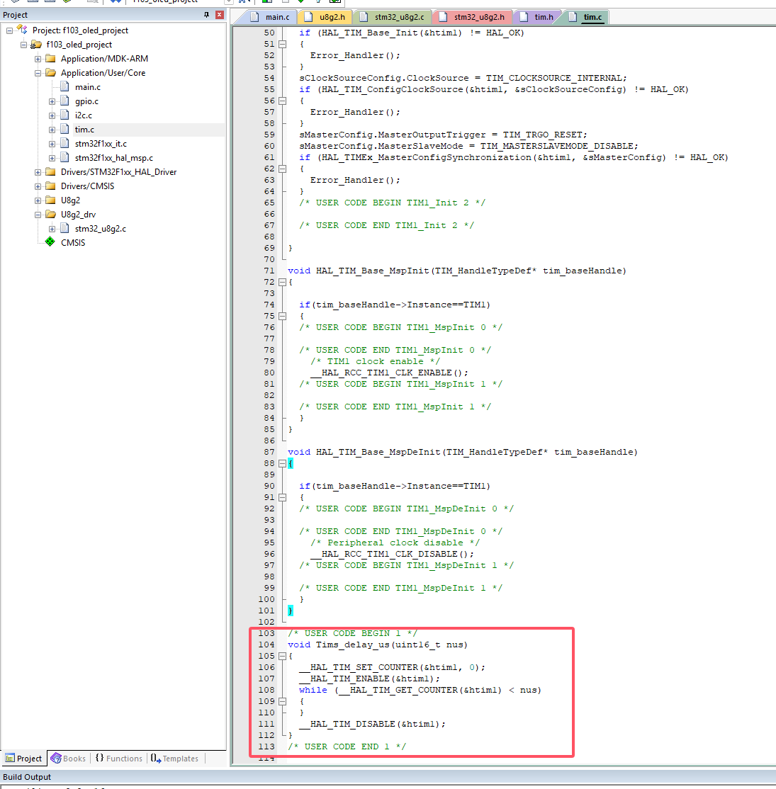 在tim.c中添加Tims_delay_us函数实现us级延时,在tim.h中声明