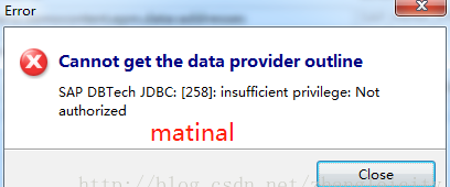 SAP DBTechJDBC: [258]: insufficient privilege: Not authorized