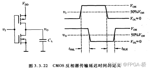 在CMOS反相器发生变化时,输出一定会滞后输入变化一段时间。