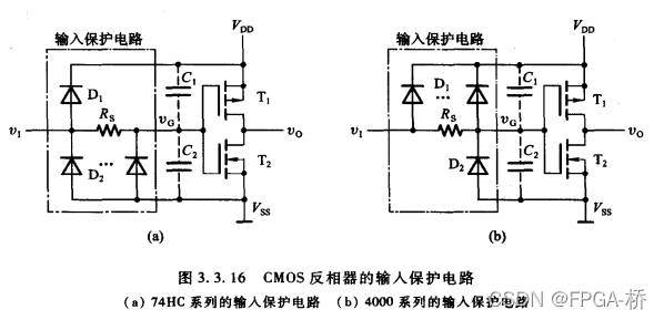 根据以上保护电路使CMOS输入工作保持在输入电压为【-0.7V ~ VDD+0.7V】。