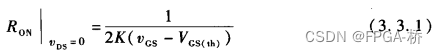 当输出为低电平时,反相器的P沟道管(上面)截止(可以等效为一个大电阻)、N沟道管导通。为得到其输出特性,需要使N沟道管工作在线性区,其输出特性为: