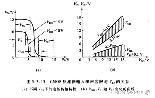VDD越高,噪声容限越大,但是当VDD高时,CMOS工作在放大区器件的功耗也随之升高。
