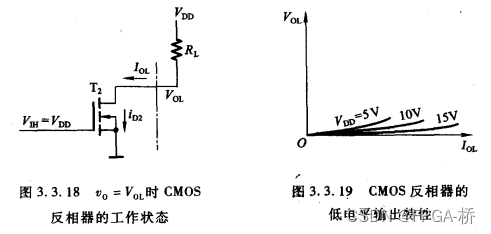 从右边那张图可以看出VDD越大时,N沟道管的形成的沟道越宽,其电阻值也越小(在图中表现成斜率),其VOL越接近于0。