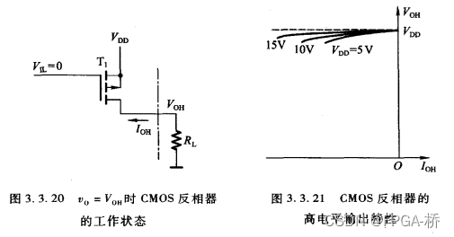 从右边那张图可以看出VDD越大时,N沟道管的形成的沟道越宽,其电阻值也越小(在图中表现成斜率),其VOH越接近于VDD。