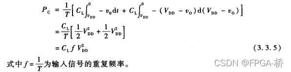 静态功耗近似为0,即稳定的处于0、1的某一个状态。动态功耗表示CMOS管从一个稳定态跳变成另一个稳定态时的功耗。动态功耗分为两部分,一部分为负载电容充、放电所消耗的功率;另一部分是由于两个MOS管T1和T2在短时间内同时导通所消耗的瞬时导通功耗