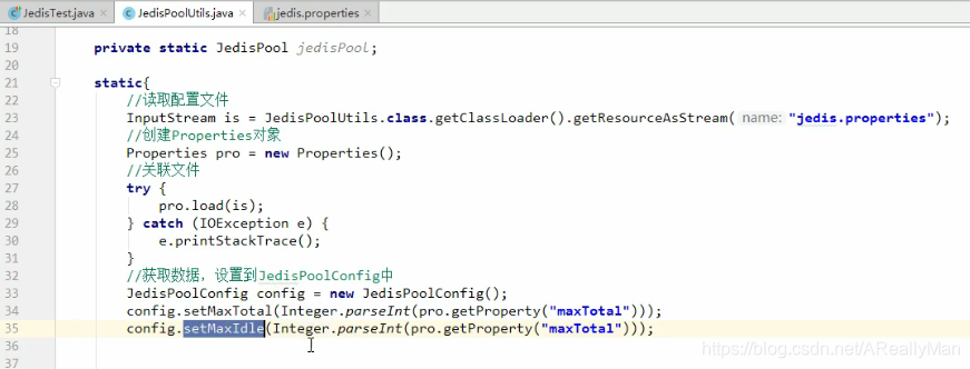 InputStream is=JedisPoolUtils.class.getClassLoader().getResourceAsStream("jedis.properties");