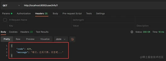 response-body: '{"code": 429, "message": "哥们,这瓜不熟,你走吧..."}'