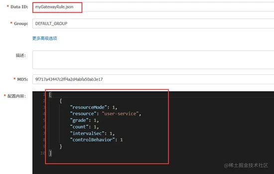 dataId: myGatewayRule.json