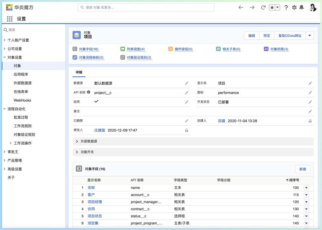 华炎魔方是 Salesforce 低代码平台的开源替代方案,使用可视化工具进行模型设计, 页面设计, 流程设计, 报表设计 , 只需点击鼠标,就能快速创建应用程序,实现敏捷开发的新高度。