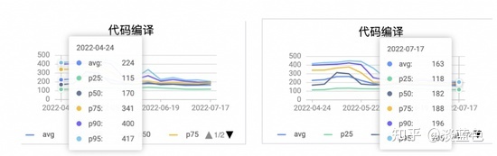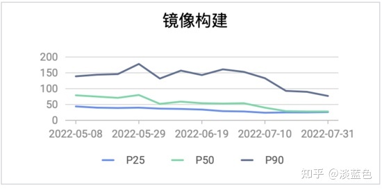 我们再来看持续了一个时间段后的总体效果,典型应用使用amaven后,构建耗时p95的时间有较明显下降,对比使用前后二个月的构建耗时降了50%左右。