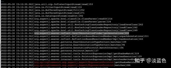 老版本aspectj的相关执行堆栈: (格式: 时间|类名|方法名|行数)