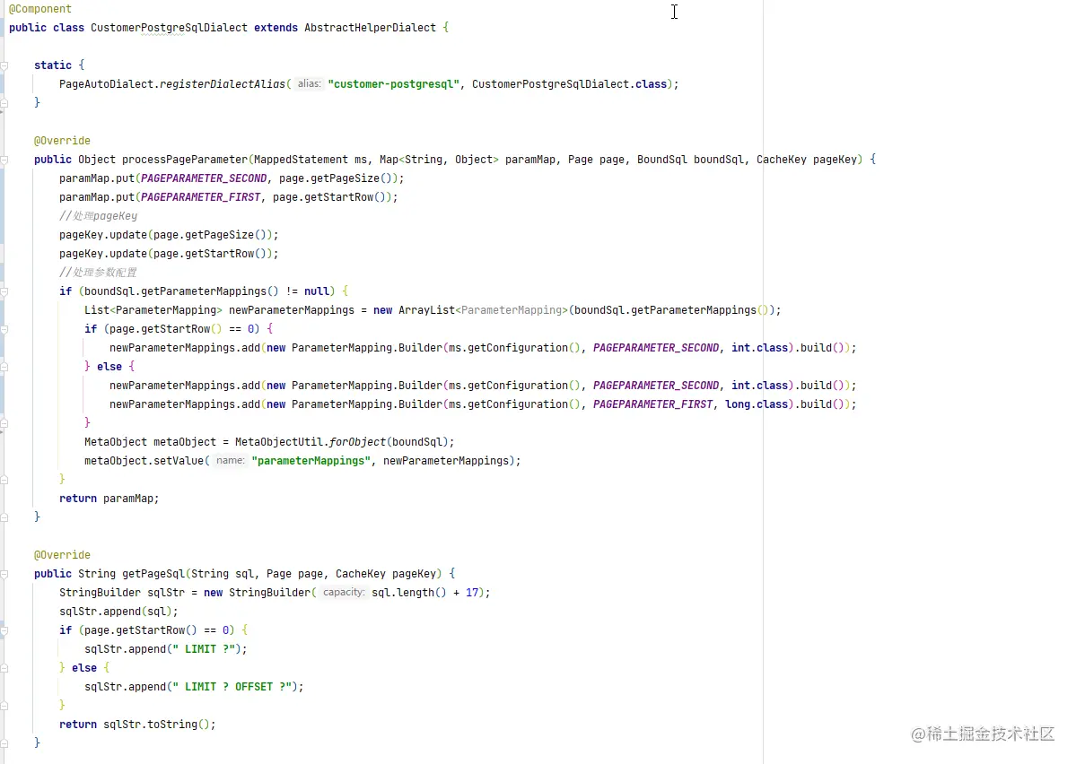 由此,我姑且判断一下,应该是pageHelper的开发者在后期对postgreSQL进行支持,偷懒了一下,直接继承了MySqlDialect,采用了postgreSQL的另一种分页语法 offset ? limit ?。