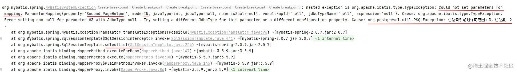 异常信息中我标注出了几个关键信息。