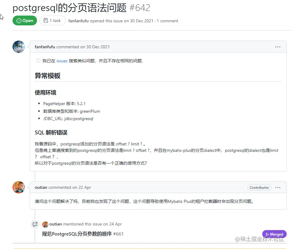 为了证实我这个判断,我专门到pageHelper的github上去找看看有没有人提过类似的issue,你别说,还真找到了。