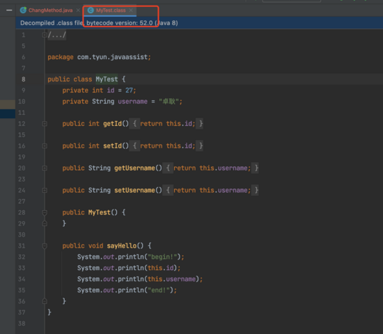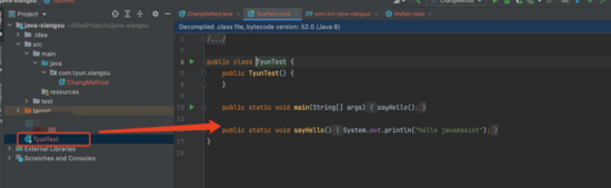 可以看到方法中的输出打印"你好,世界"变成了"hello javaAssist"。