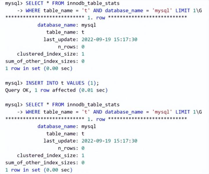 关于 MySQL 的元数据字典表有两张,一张是mysql数据库下的表 innodb_table_stats,另一张是 information_schema 数据库下的表 TABLES。