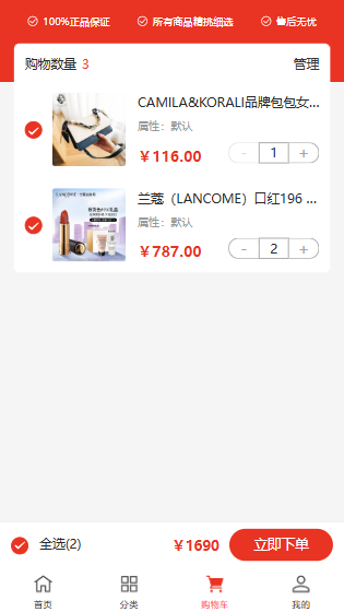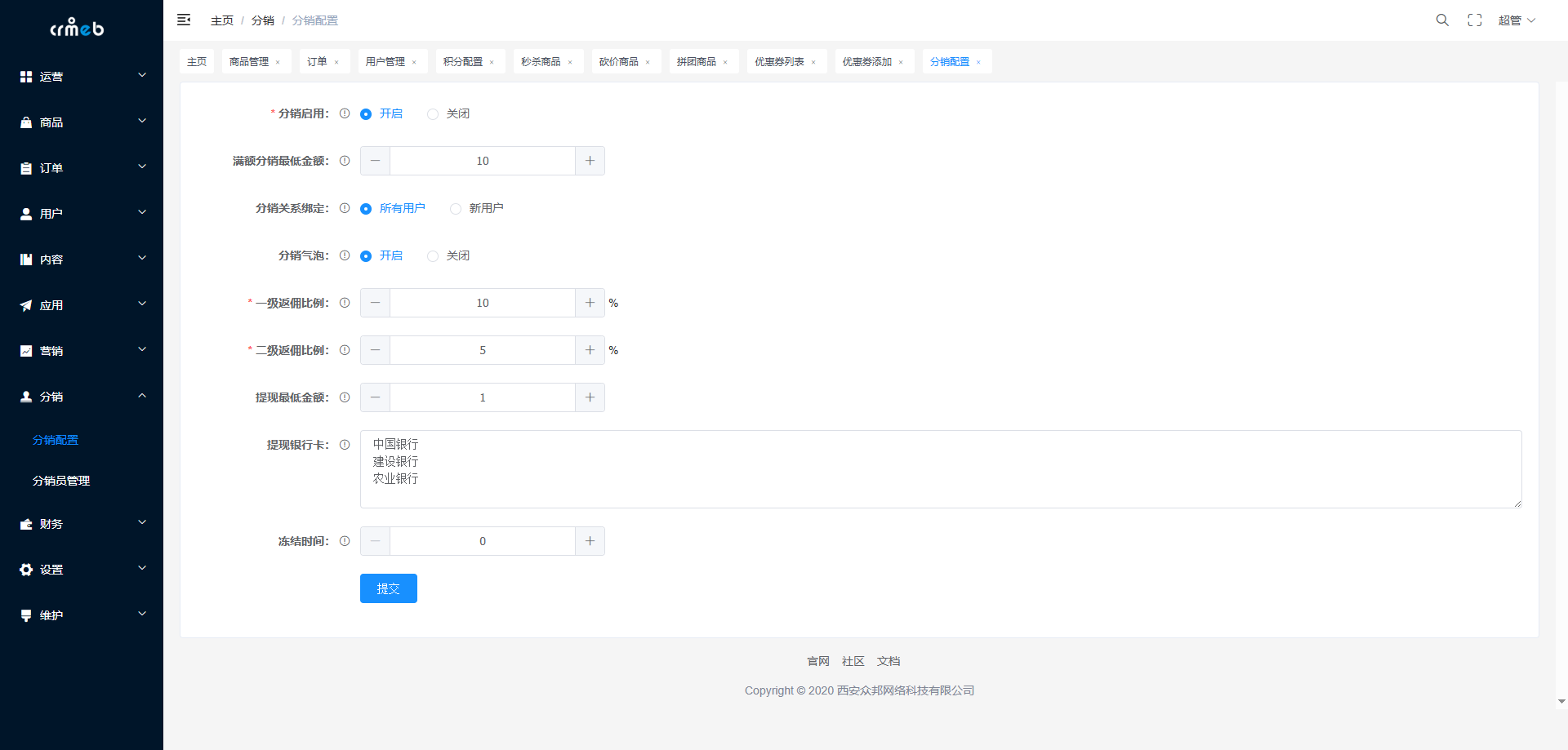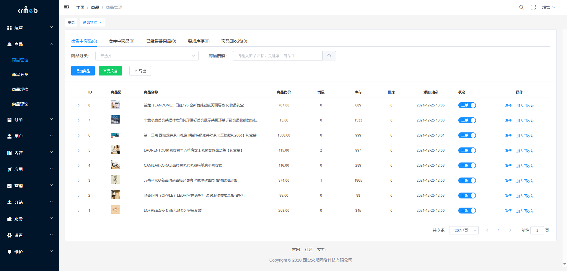 - 完整的商城功能:提供商品(分类管理、库存管理)、用户、订单、购物车、营销、分销等常用的商城系统功能