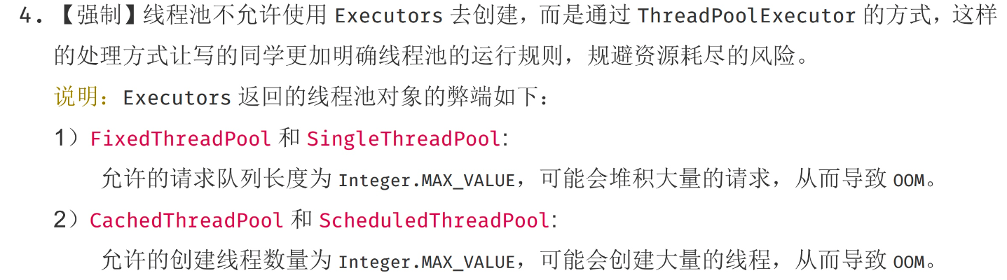 但是为什么在阿里巴巴Java开发手册中也明确指出,不允许使用Executors创建线程池呢