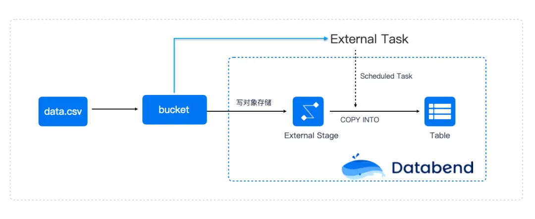 Databend 中通过 External Stage 概念和这个 bucket 关联