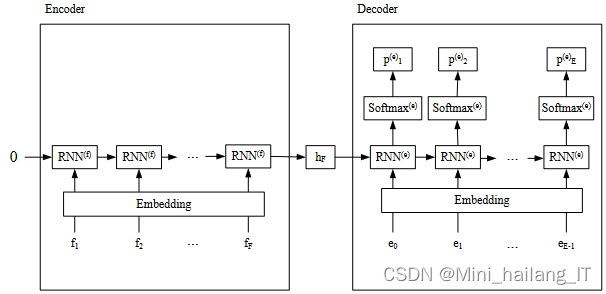 模型训练阶段,首先定义一个空序列用于逐步填入编码器的输出。编码器接收源语句序列,而解码器以开始符号<SOS>为起点,并利用编码器的最后一个隐藏层作为初始隐藏状态。通过迭代公式,解码器生成目标语句序列。在解码过程中,每次迭代都将当前输入和隐藏状态传入解码器,并结合编码器的输出进行计算。若解码过程中遇到结束符,则当前句子结束并终止循环。