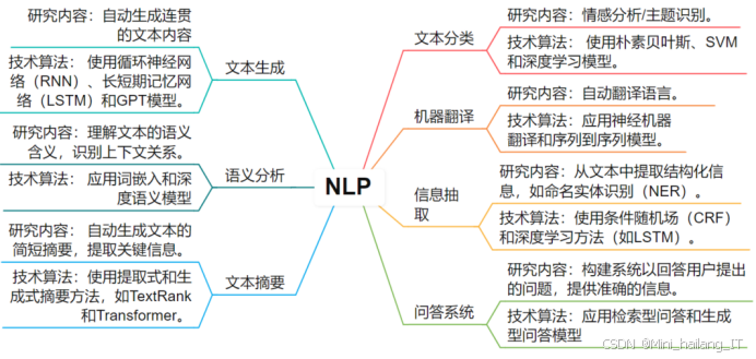 自然语言处理方向关注如何使计算机理解、生成和处理人类语言。该方向子领域包括文本分类、情感分析、命名实体识别、机器翻译、问答系统以及对话系统等。研究内容涉及语言模型预训练、语义理解与表示、序列生成与优化以及多模态融合。可实现的功能包括智能文本分类系统、社交媒体情感分析平台、自动问答机器人等,核心技术涵盖Word2Vec、BERT、GPT等预训练模型以及LSTM、Transformer等网络结构。这一方向强调对语言特性的理解,通过构建自然语言处理系统,同学们可以掌握文本处理的核心技术,了解人机语言交互的最新进展。
