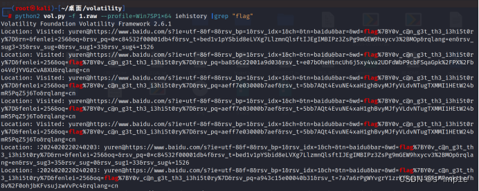 1.你在我的电脑上干了什么?快使用volatility看一看cmd吧(将flag格式改为begin{})