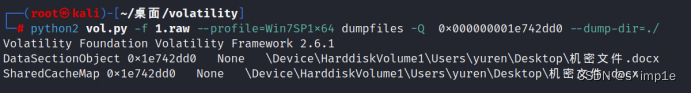 用dumpfiles命令提取出机密文件.docx