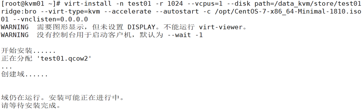 1.用virt-install命令安装虚拟机