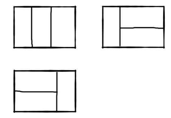 递归是解决这类问题最直观的方法。对于2×n的矩形,我们考虑第一块小矩形的放置方式: