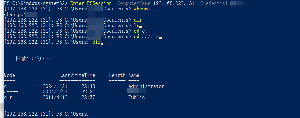 Enter-PSSession -ComputerName "远程计算机名或IP" -Credential "用户名"