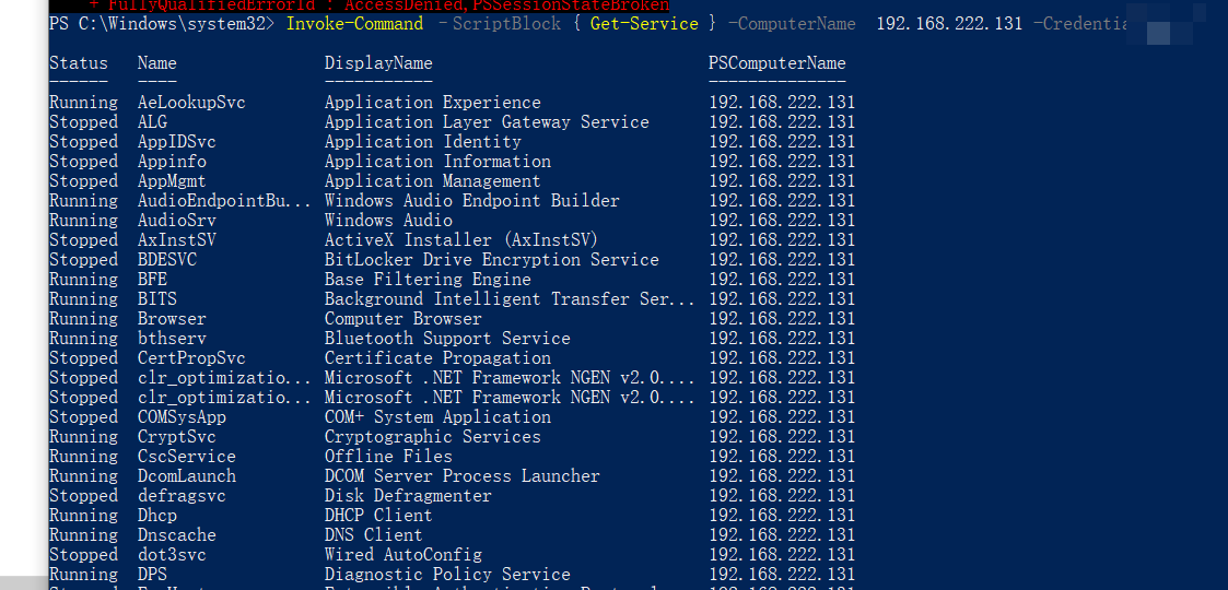 Get-ExecutionPolicy查看,如需设置可使用Set-ExecutionPolicy RemoteSigned) - 是否对面被控主机也开启了winrm服务