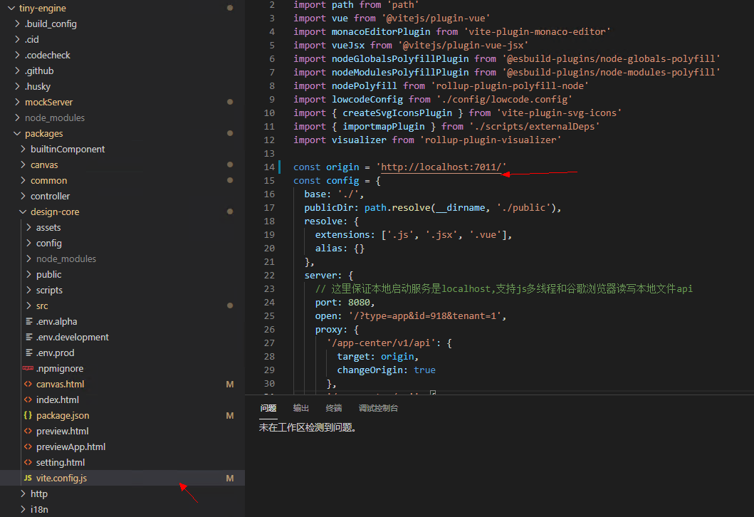 修改 packages/design-core/vite.config.js 中 origin 的值为自己本地 webService 项目的地址端口(webService 端口默认为 7011)