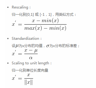 特征抽取后,如果不同特征的取值范围相差很大,最好对特征进行归一化,以取得更好的效果,常见的归一化方式如下: