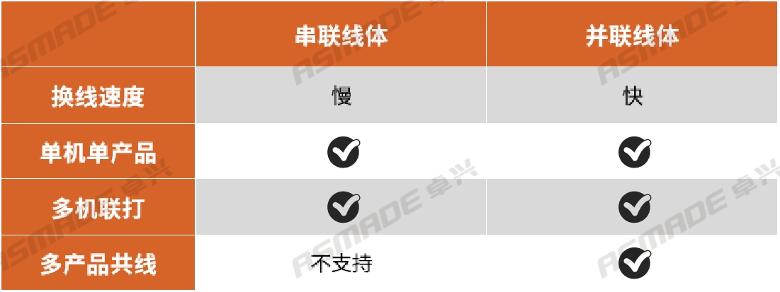 不仅支持常规的“单机单产品”或者“多机单产品”两种模式,同时可支持"多产品共线"生产,即:一条线体同时可以完成多个不同产品的生产。