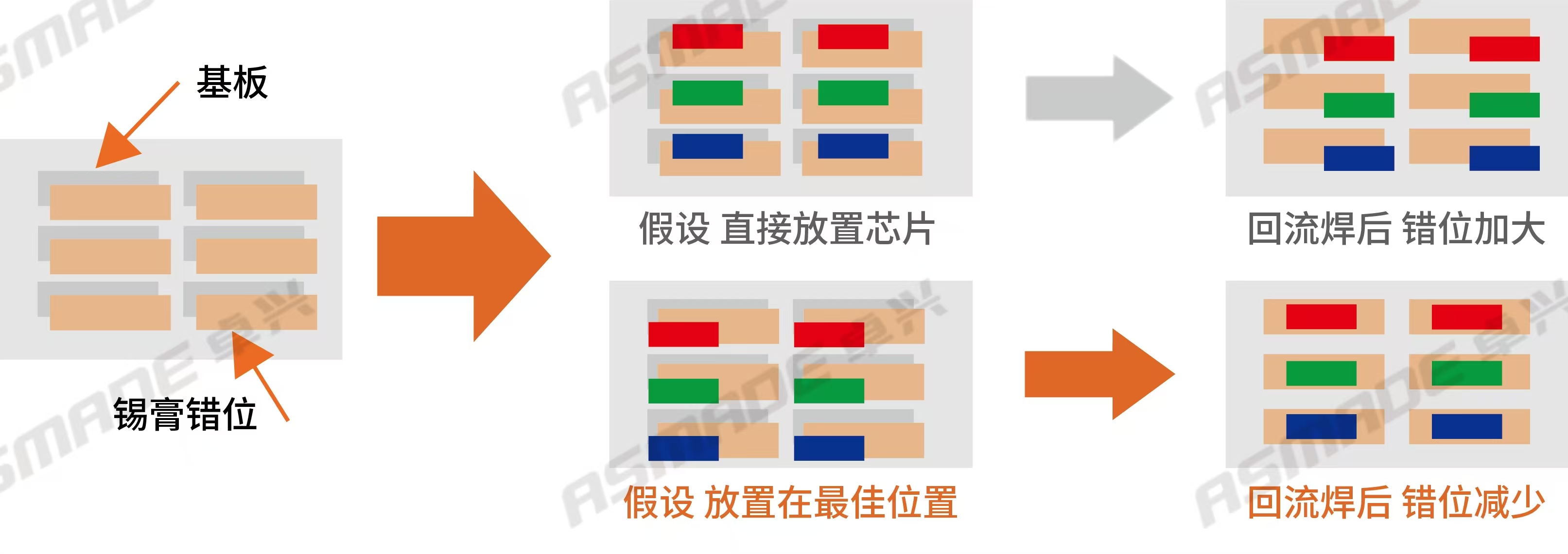 举例:以锡膏印刷错位为例,如果直接放置芯片,那么在回流焊后,则会错位加大。如果加入AI风险预警,在锡膏错位时,AI算法会计算出芯片放置的最佳位置,从而实现回流焊后,错位减少。