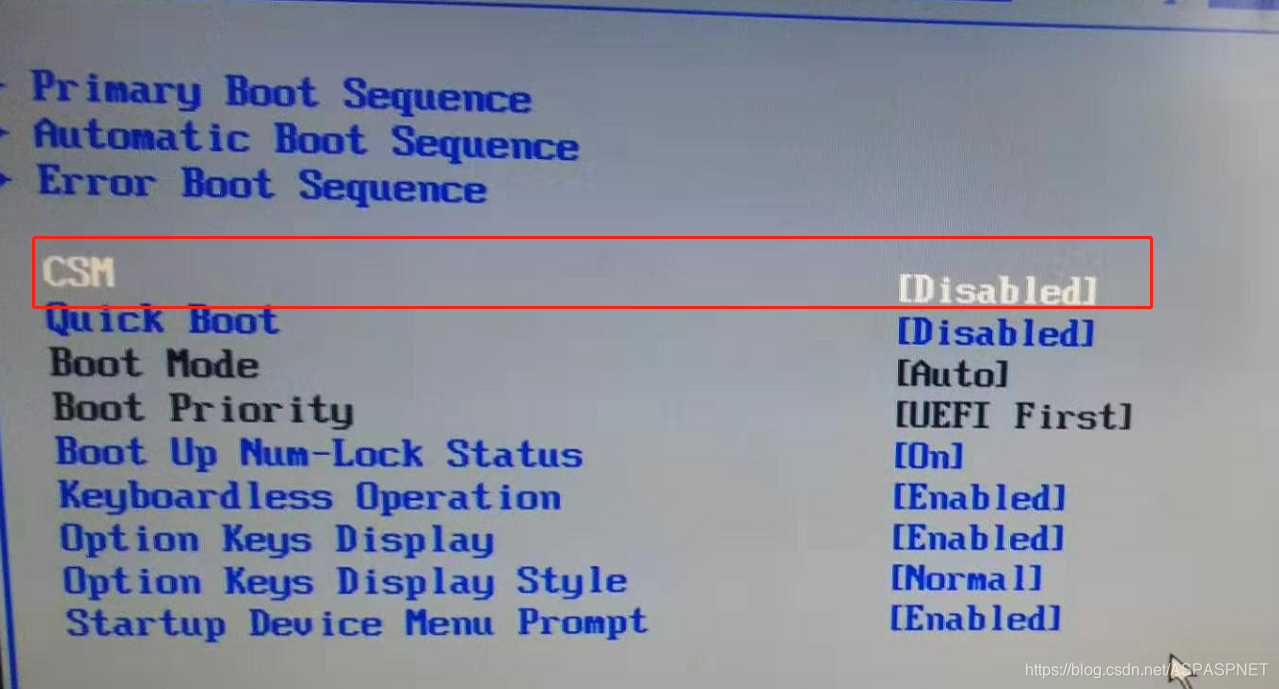- 经多次测试后,对BIOS进行修改,在加入虚拟技术和关闭CSM后解决