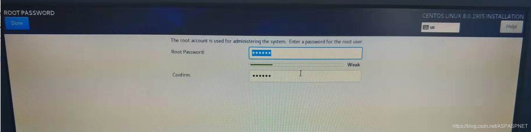 - 修改root密码和新增日常用户,这里有个小技巧,如想设置简单密码,可双击两次DONE确认。
